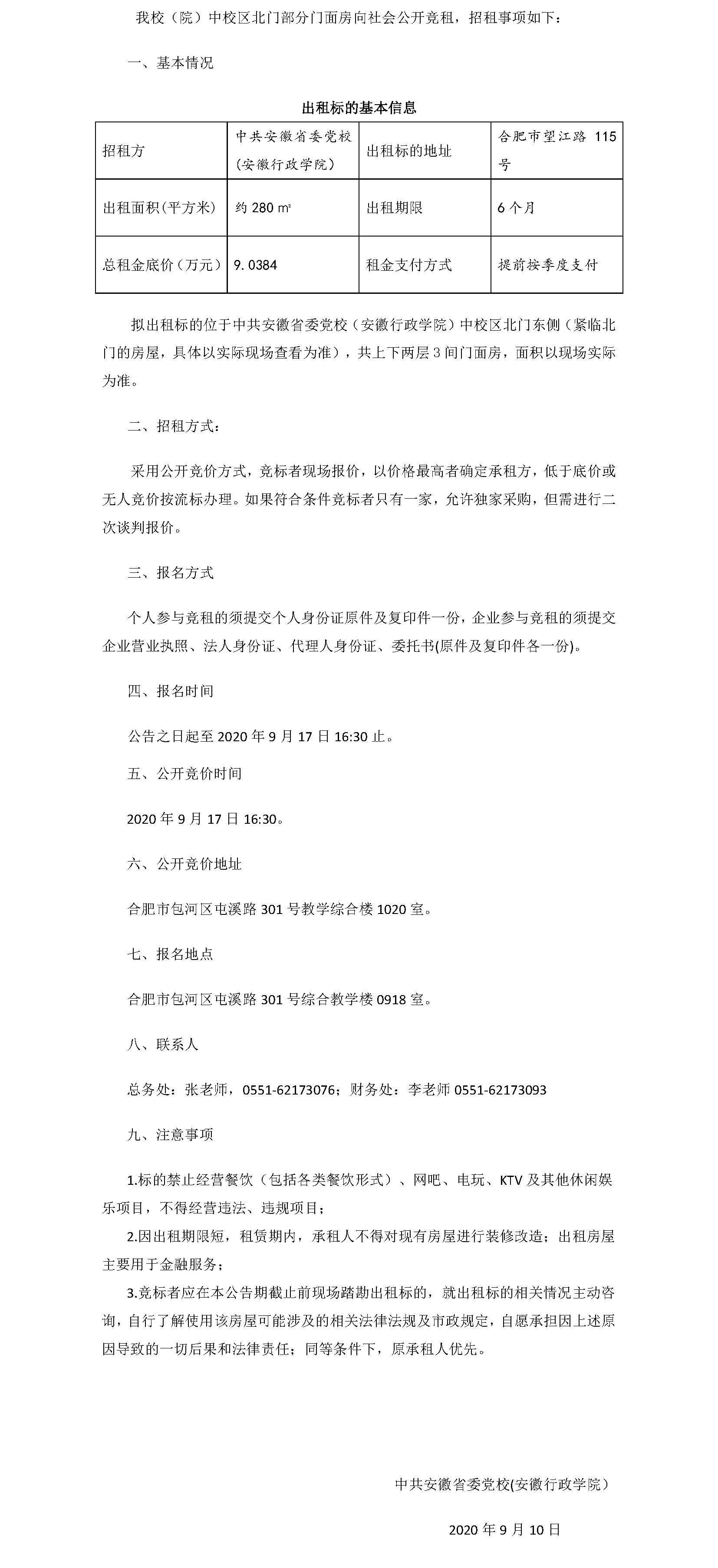 中校區(qū)北門部分門面房公開競租公告