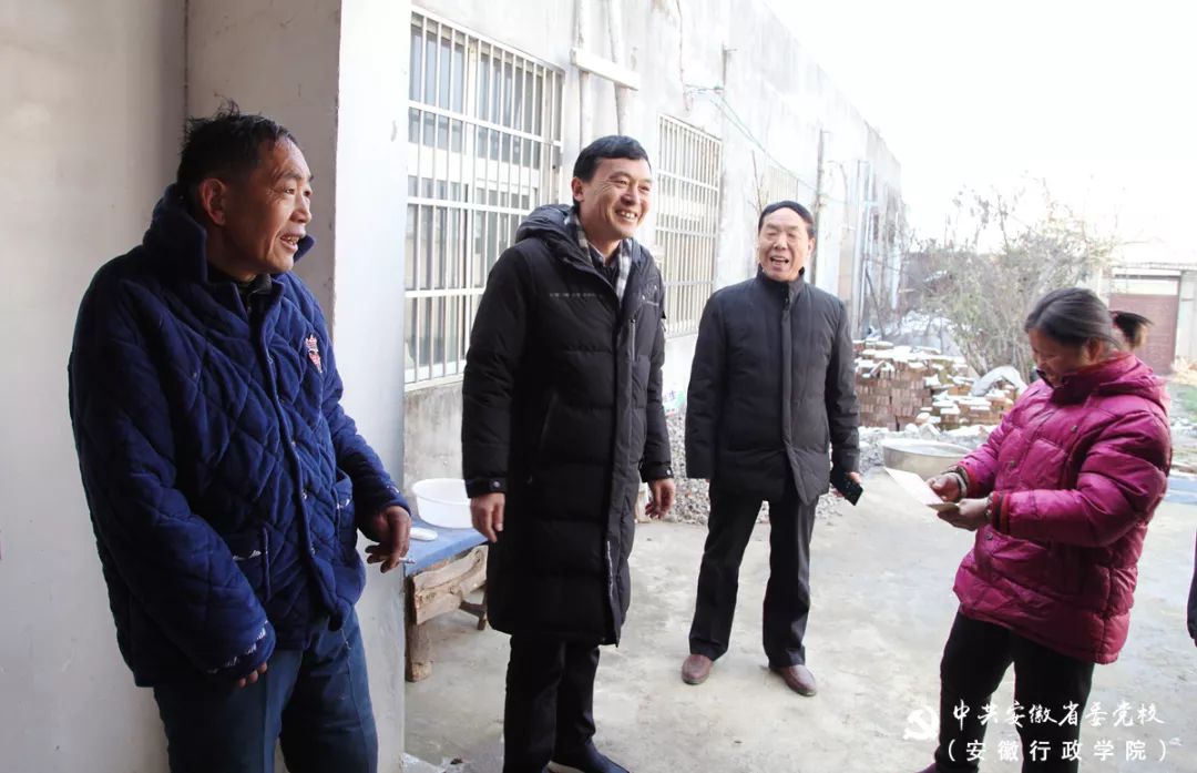 12月14日,省委黨校(安徽行政學(xué)院)常務(wù)副校(院)長張永,副校(院)長汪劉送、鄧玉明,赴校(院)對(duì)口幫扶的潁泉區(qū)伍明鎮(zhèn)店西村、王寨村看望駐村扶貧工作隊(duì),走訪慰問貧困群眾,深入對(duì)接定點(diǎn)幫扶措施。