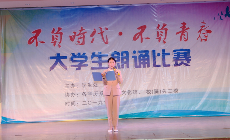 經(jīng)各系預(yù)賽選拔,有12位選手進(jìn)入決賽。圖書和文化館“悅之春.我的祖國(guó)”詩(shī)歌朗誦平臺(tái)選送的節(jié)目《致橡樹》和《我的南方和北方》進(jìn)行了現(xiàn)場(chǎng)表演。比賽結(jié)束后,陳在群為同學(xué)們的表演作精彩點(diǎn)評(píng)。