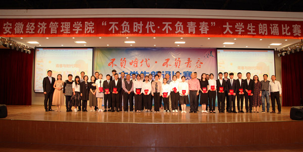 2019年4月17日下午,安徽經(jīng)濟(jì)管理學(xué)院在西校區(qū)大禮堂舉辦“不負(fù)時代·不負(fù)青春”大學(xué)生朗誦比賽決賽。本次活動由學(xué)生處主辦,各系、圖書文化館和關(guān)工委協(xié)辦。學(xué)院黨委委員、副院長童玲出席活動。院關(guān)工委王效昭教授、進(jìn)修一部副處級組織員陳在群老師、院團(tuán)委曹若愚老師、圖書館鄭潔老師和學(xué)生處副處長張雪峰應(yīng)邀擔(dān)任評委。